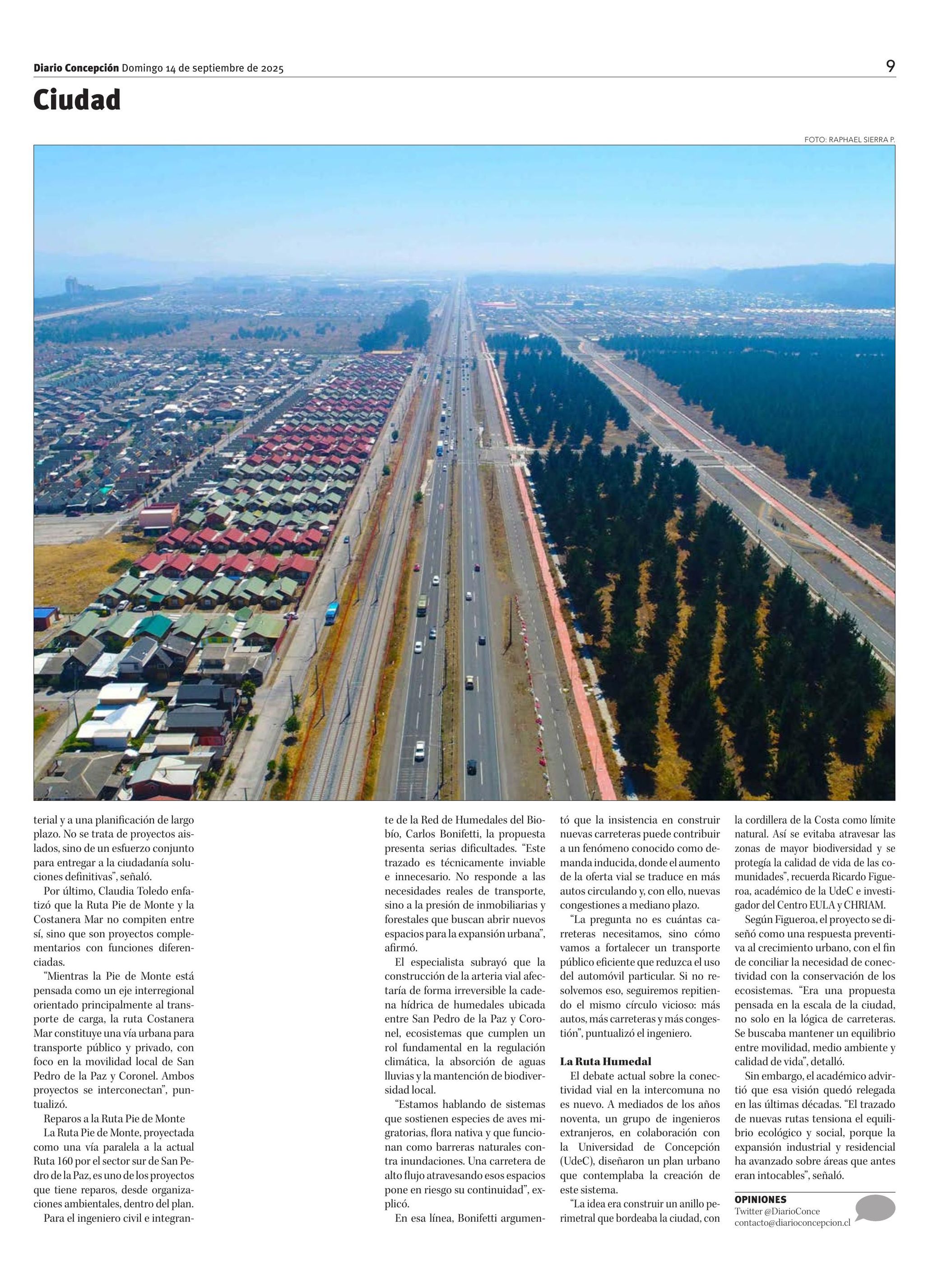 “La idea era construir un anillo perimetral que bordeaba la ciudad, con la cordillera de la Costa como límite natural. Así se evitaba atravesar las zonas de mayor biodiversidad y se protegía la calidad de vida de las comunidades”, recuerda Ricardo Figueroa, académico de la Facultad de Cs. Ambientales UdeC e investigador del Centro EULA y CHRIAM.